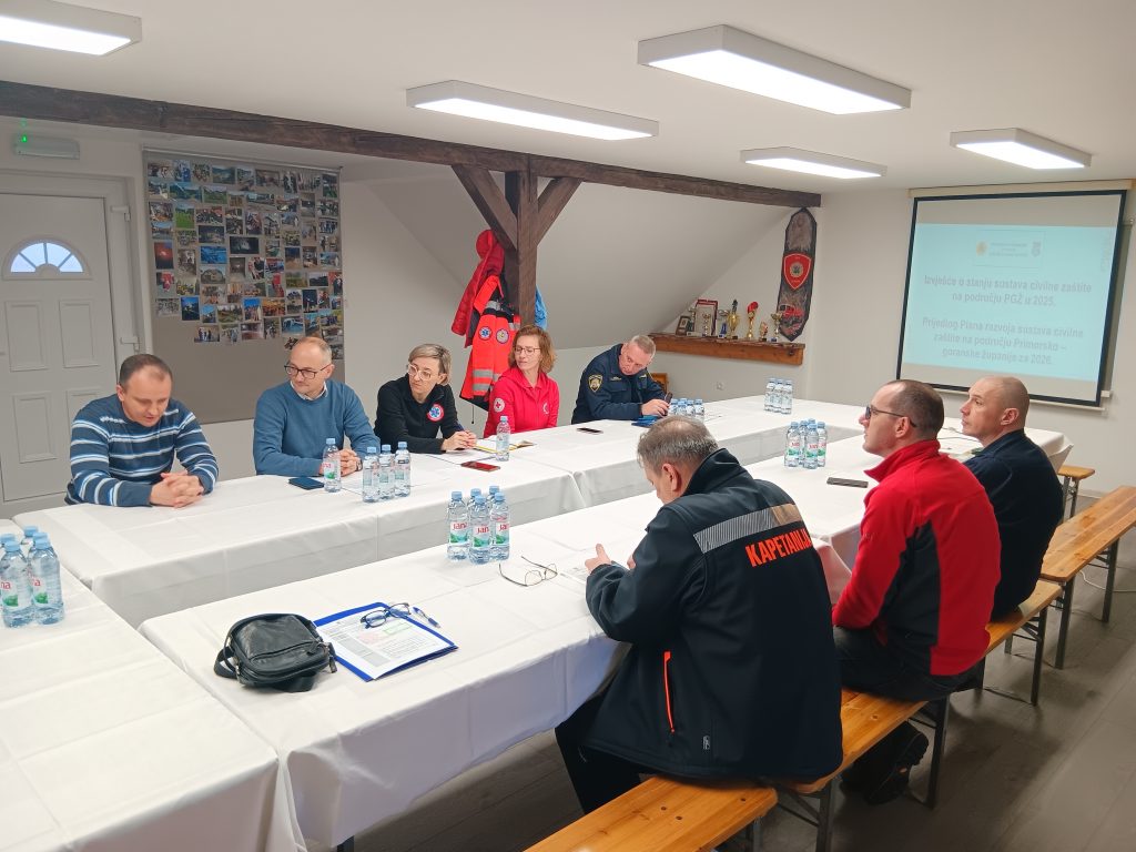 U prostorijama Dobrovoljnog vatrogasnog društva Gerovo u Gerovu, danas je održana sjednica Stožera civilne zaštite Primorsko –goranske županije. Na sjednici se je raspravljalo o stanju sustava civilne zaštite na području PGŽ u 2025. godini, prijedlogu Plana razvoja sustava civilne zaštite na području PGŽ za 2026. godinu, planiranim aktivnostima sastavnica sustava civilne zaštite PGŽ u 2026. godini te Programu aktivnosti u provedbi posebnih mjera zaštite od požara.