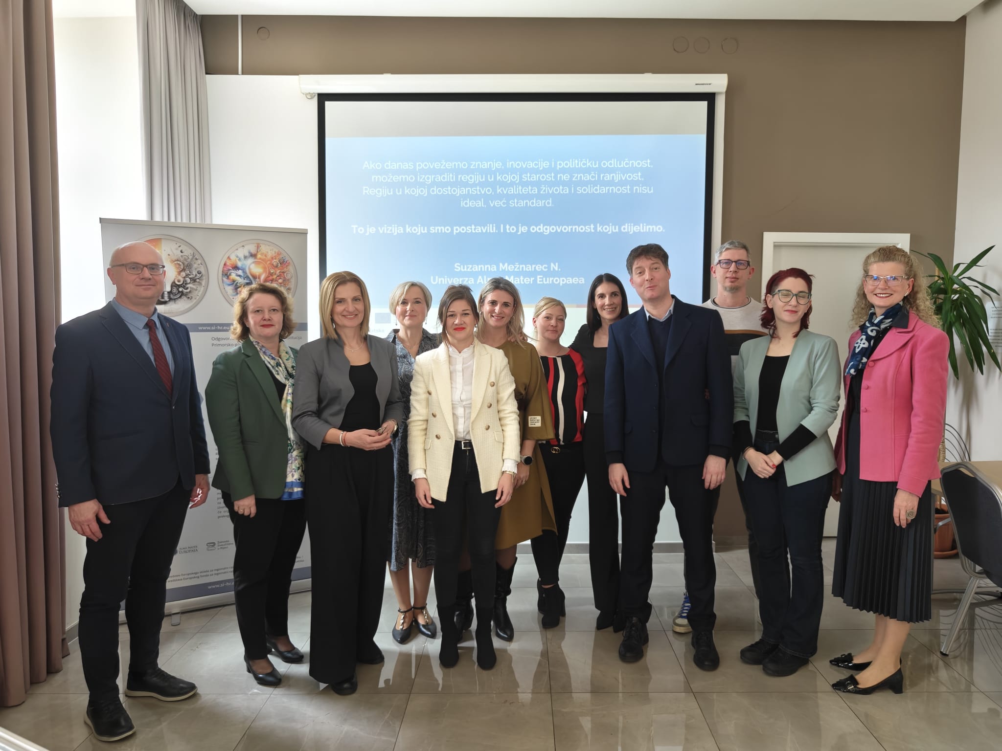 Zamjenik župana Toni Štimac istaknuo je važnost ovog projekta za daljnji razvoj socijalnih usluga u županiji. „Socijalne inovacije, osobito u sustavu skrbi za starije osobe, tema su koja je sve aktualnija diljem Europe. Razlog je jednostavan, europsko stanovništvo sve je starije. Uz inovativne pristupe uvode se i nove tehnologije koje će postajati sve potrebnije, posebno u području demencije i Alzheimerove bolesti, gdje se bilježi značajan porast broja oboljelih. Prema dostupnim pokazateljima, udio oboljelih u starijoj populaciji raste iz godine u godinu, što dodatno naglašava potrebu za prilagodbom sustava skrbi“, istaknuo je Štimac.