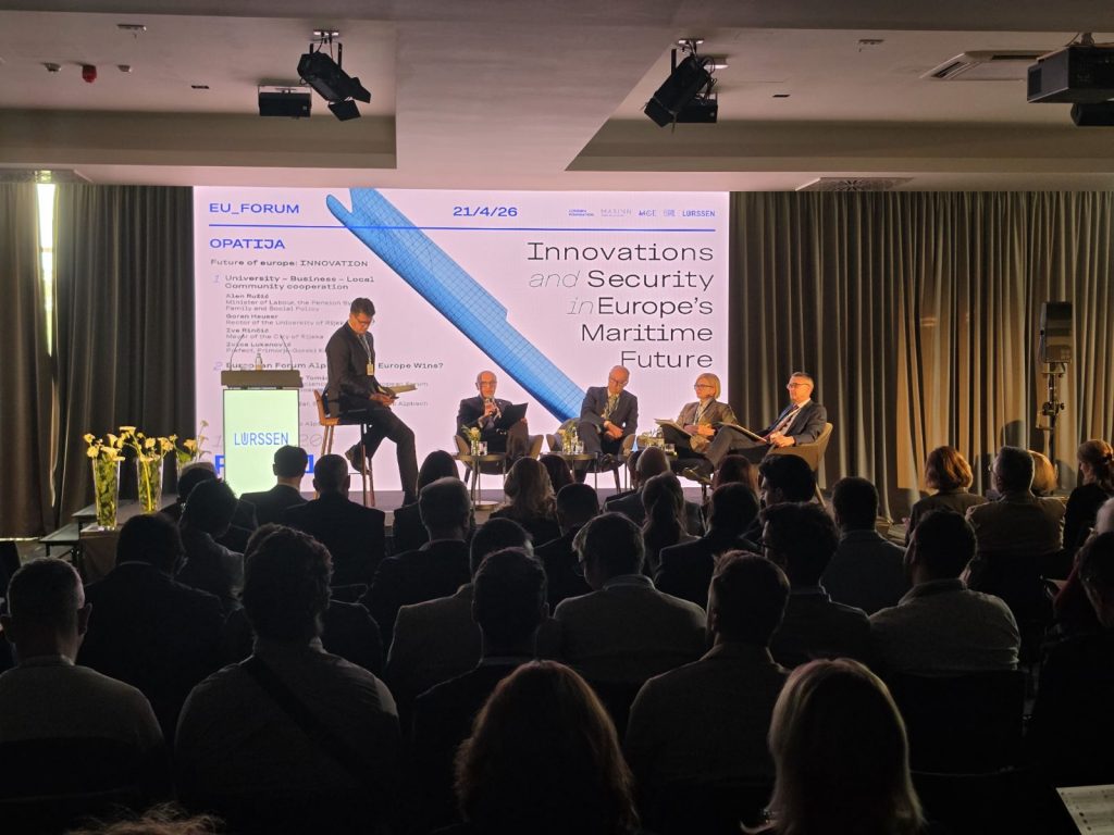 U Opatiji je održan EU Forum „Innovations and Security in the Maritime Future“, međunarodno okupljanje koje je okupilo predstavnike institucija, znanstvenike, gospodarstvenike i sigurnosne stručnjake s ciljem rasprave o budućnosti europskog pomorskog sektora u kontekstu tehnoloških promjena, održivosti i sigurnosnih izazova.